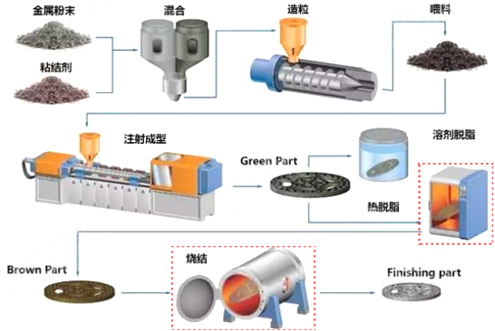 CIM工藝主要包括產(chǎn)品設(shè)計(jì)、模具設(shè)計(jì)、質(zhì)量檢測、混合、成型、脫脂、燒結(jié)、二次加工等8個(gè)重要環(huán)節(jié),我公司可根據(jù)客戶產(chǎn)品及工藝要求,定制脫脂和燒結(jié)設(shè)備,且可整合一起,提供真空脫脂燒結(jié)一體化設(shè)備。
